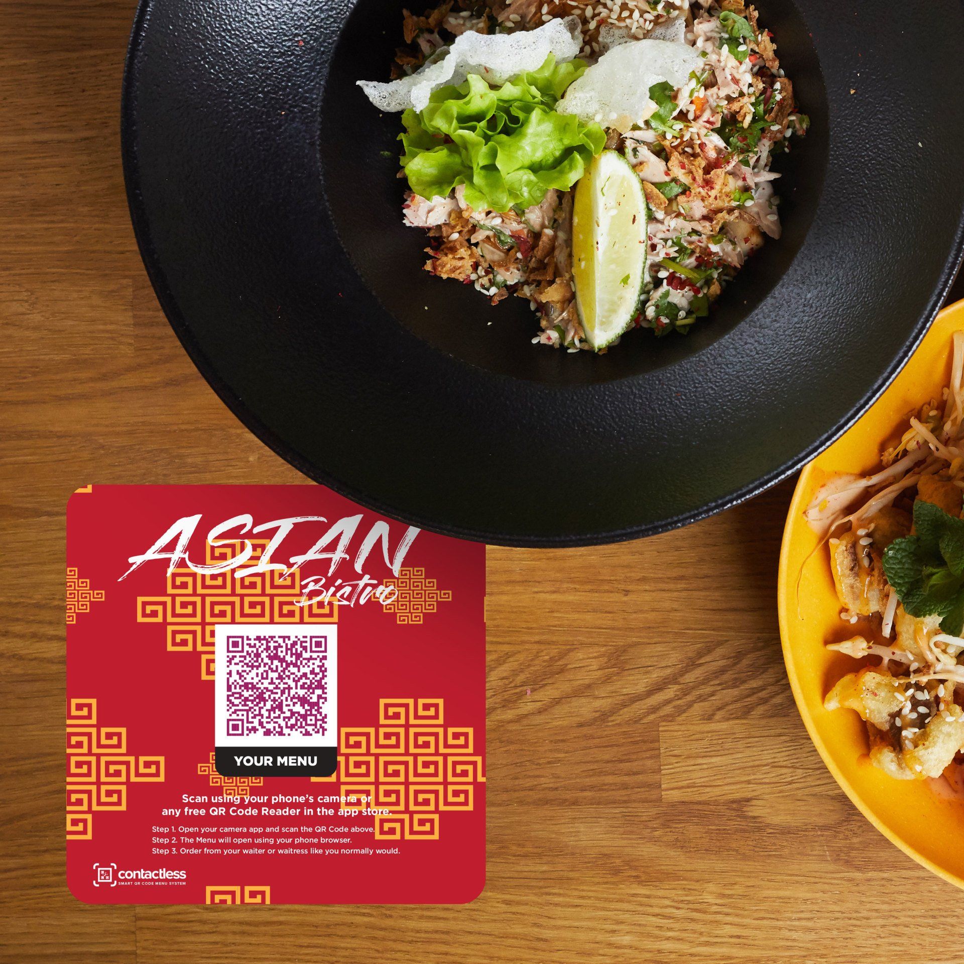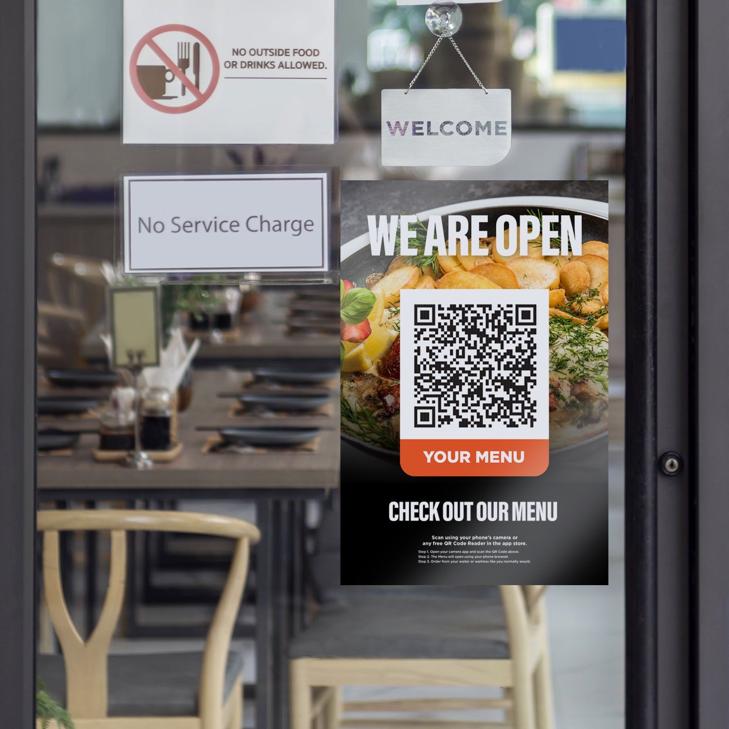 The contactless menu is simplicity at its best. By simply placing a small decal tabletop sign